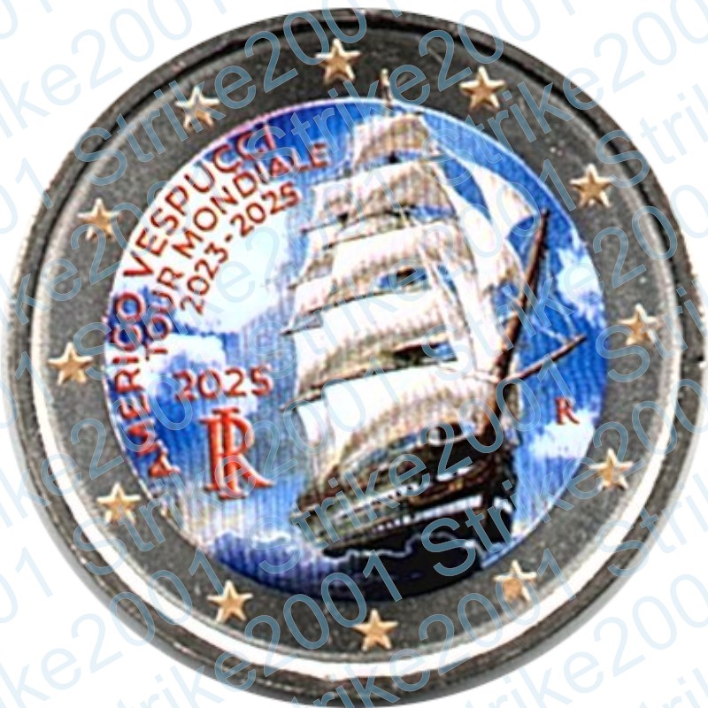 Tipo: 2 Euro commemorativo colorato - Viaggio della nave Amerigo Vespucci