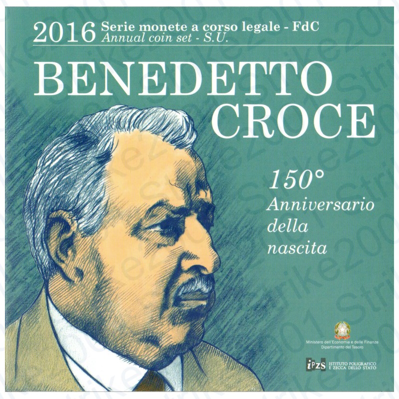 Tipo: Serie divisionale ufficiale - 10 Valori: Serie completa 8 monete + 2 euro commemorativo Plauto e 5 Euro Argento Benedetto Croce