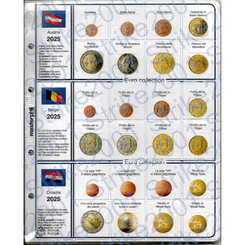Tipo: Kit composto da 6 pagine plastificate con illustrazione delle singole monete sullo sfondo. Sono previsti gli spazi per contenere le 8 monete dei 18 stati aderenti all'EURO.
